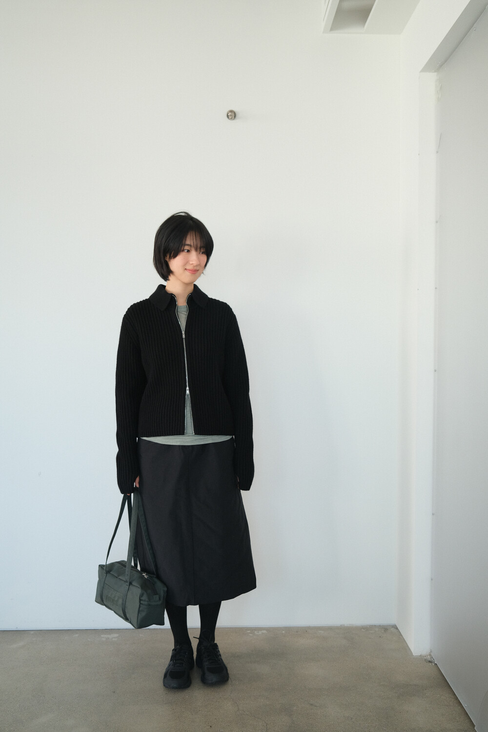 도톰한 트윌 나일론 원단에 워싱 가공을 하여 미세한 주름이 보여지는 것이 특징입니다.