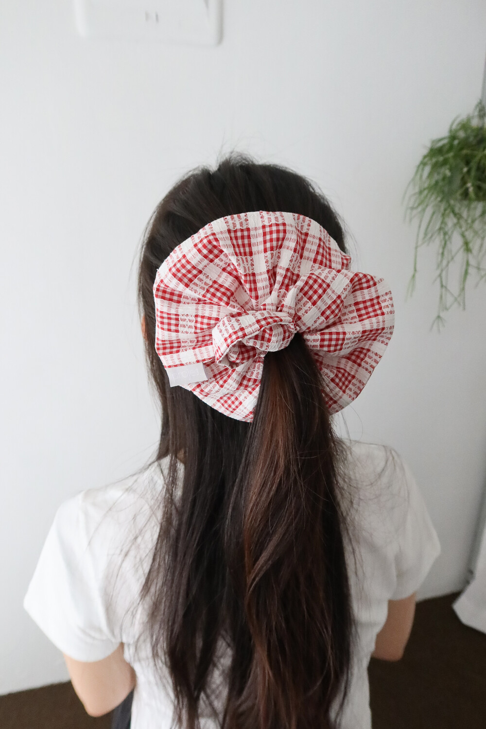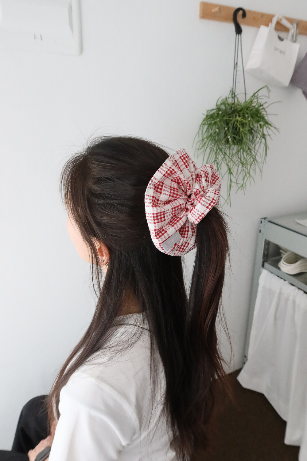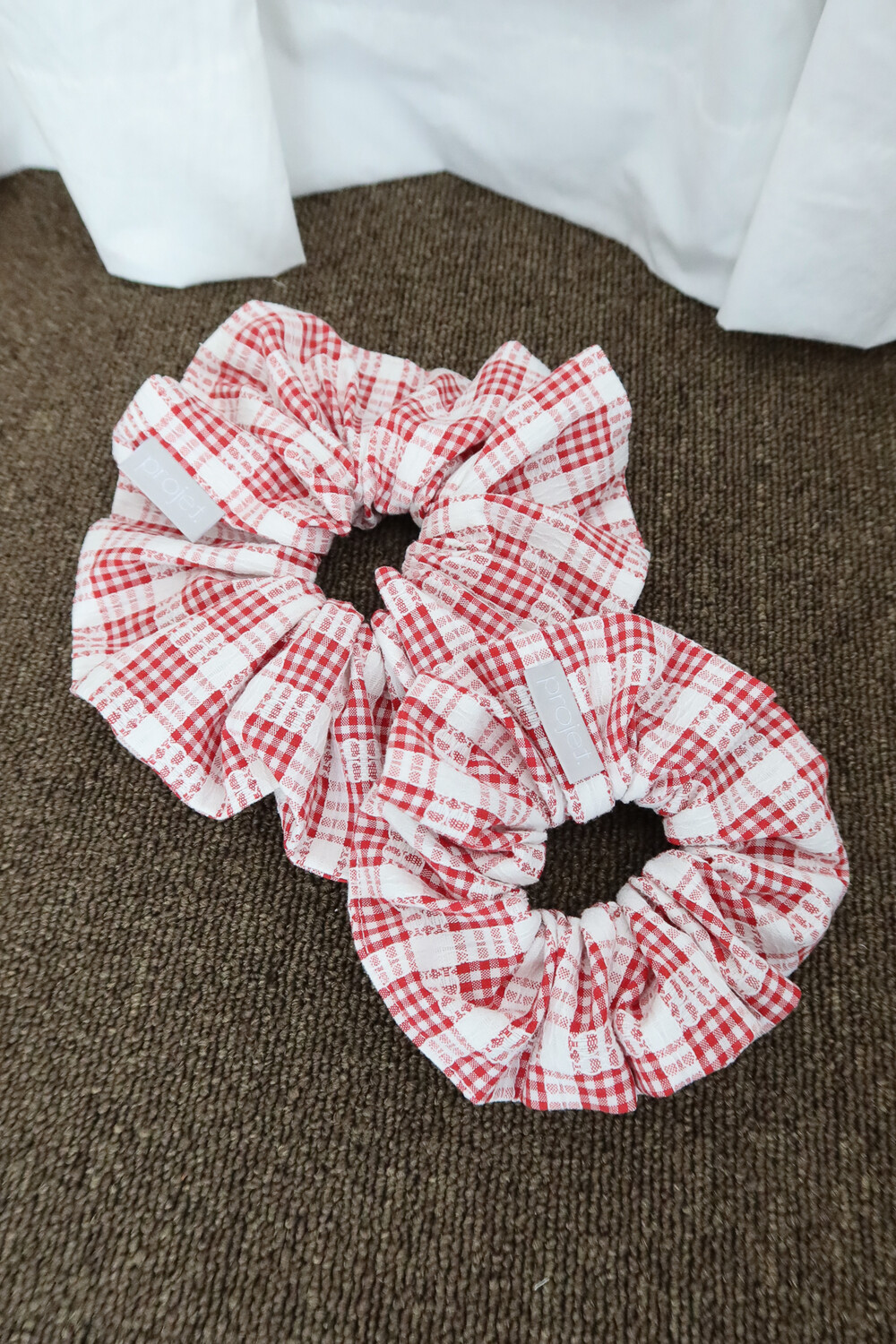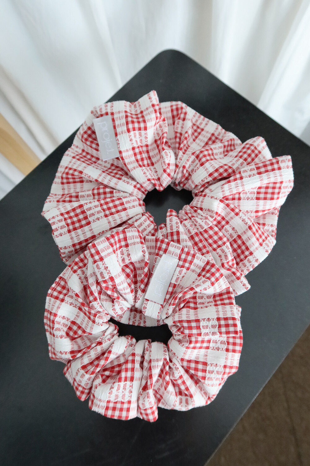 big point scrunchie (check_red lace)
