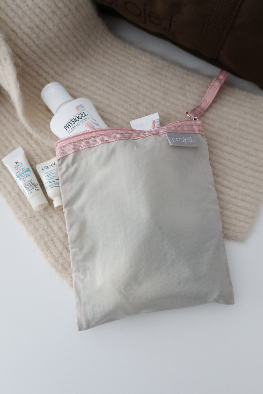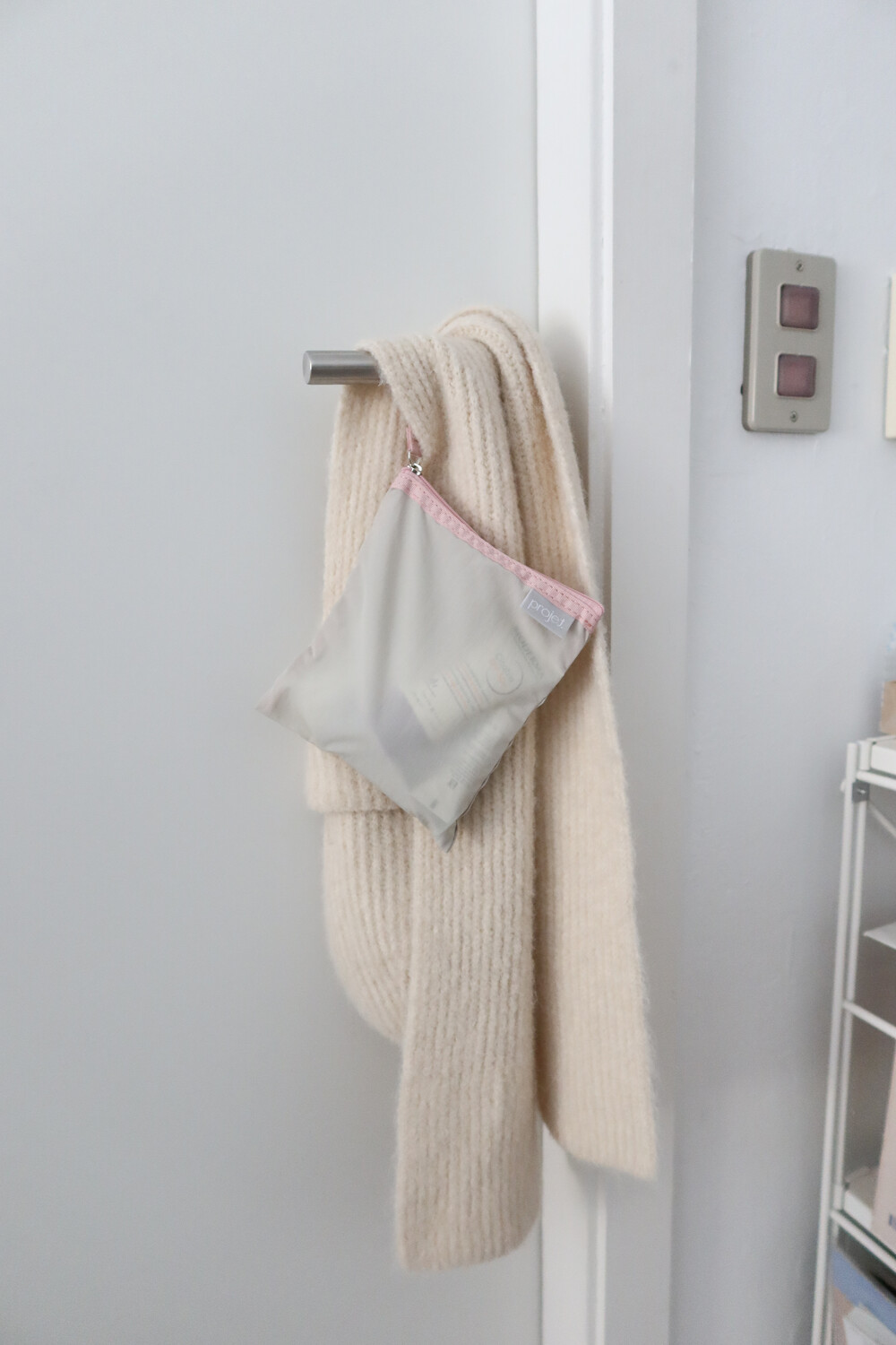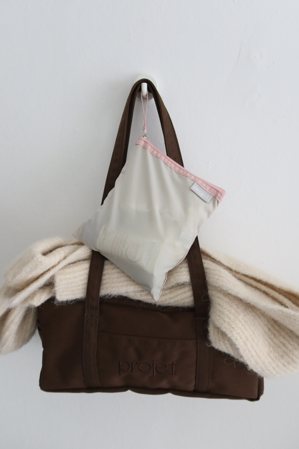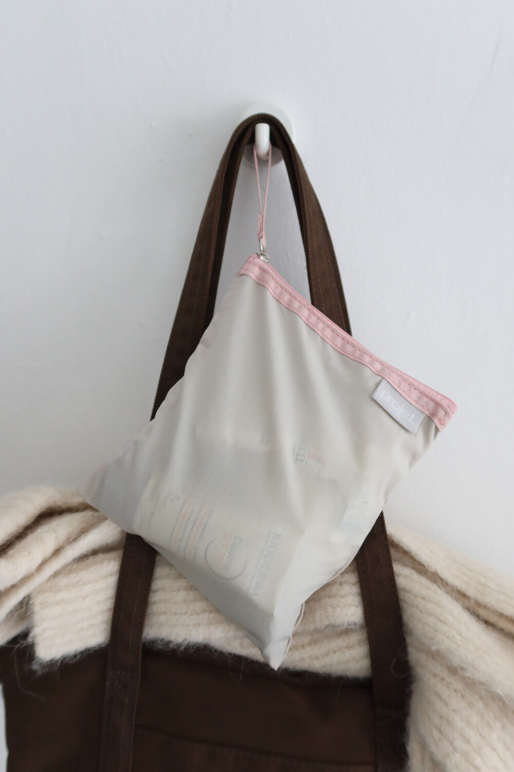 짧은 스트랩이 있어 지퍼를 열고 닫기에도, 어딘가에 걸어 두기에도 무척 편리합니다.