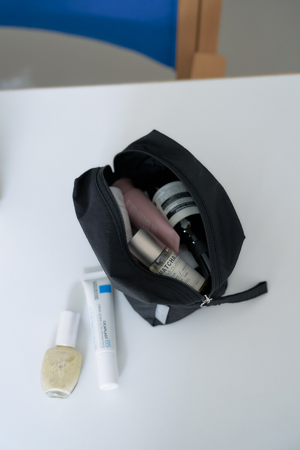짧은 스트랩이 있어 지퍼를 열고 닫기에도, 어딘가에 걸어 두기에도 무척 편리합니다.