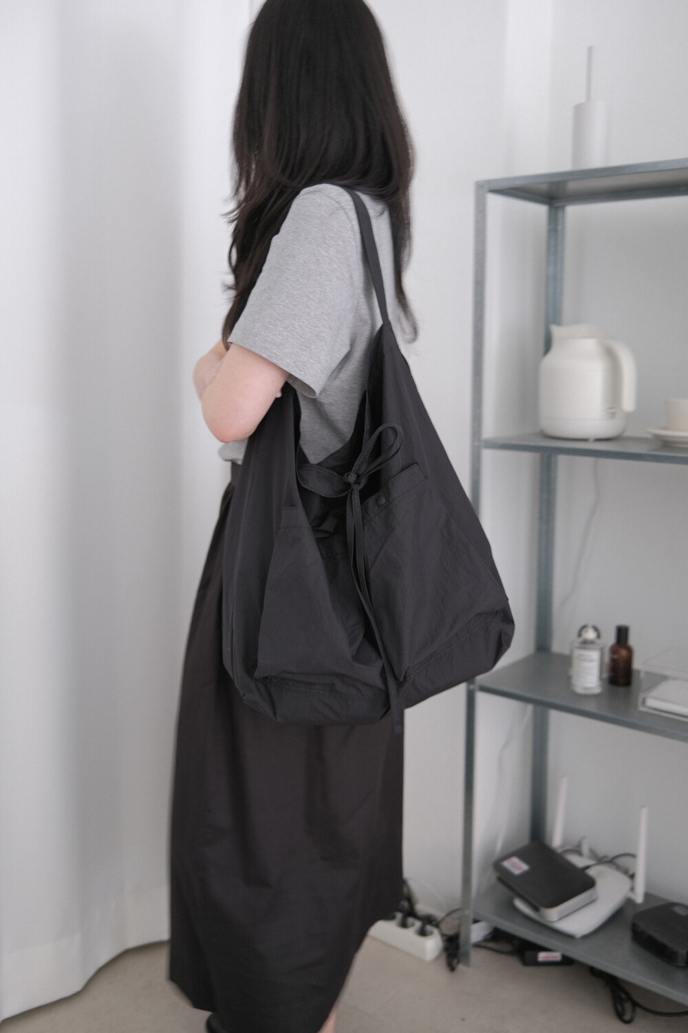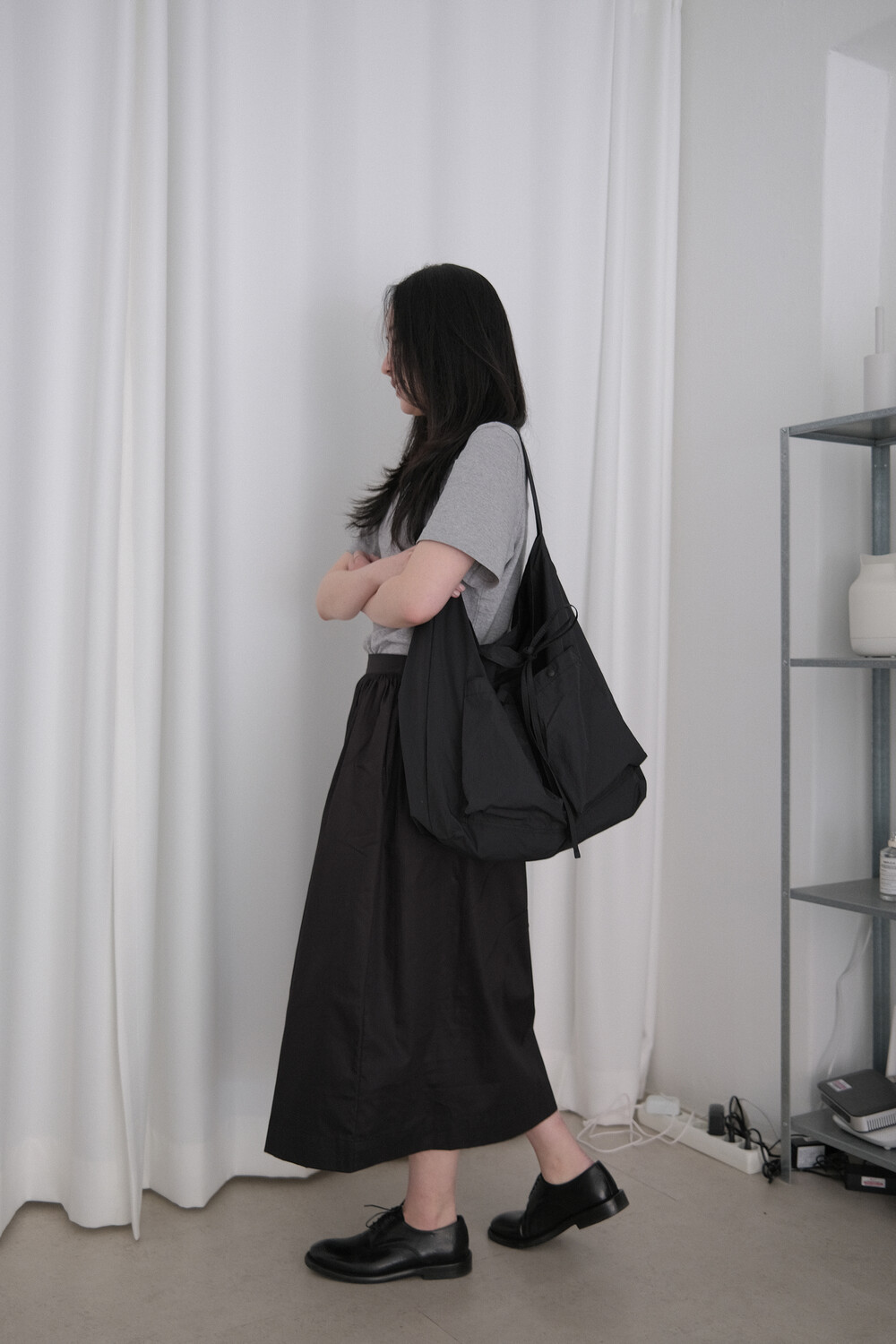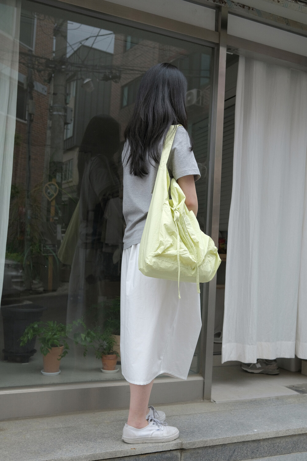 나일론 소재 특유의 기분 좋게 바스락거리는 질감과, 편안하면서도 어딘가 단정한 분위기를 갖고 있는 원단입니다.