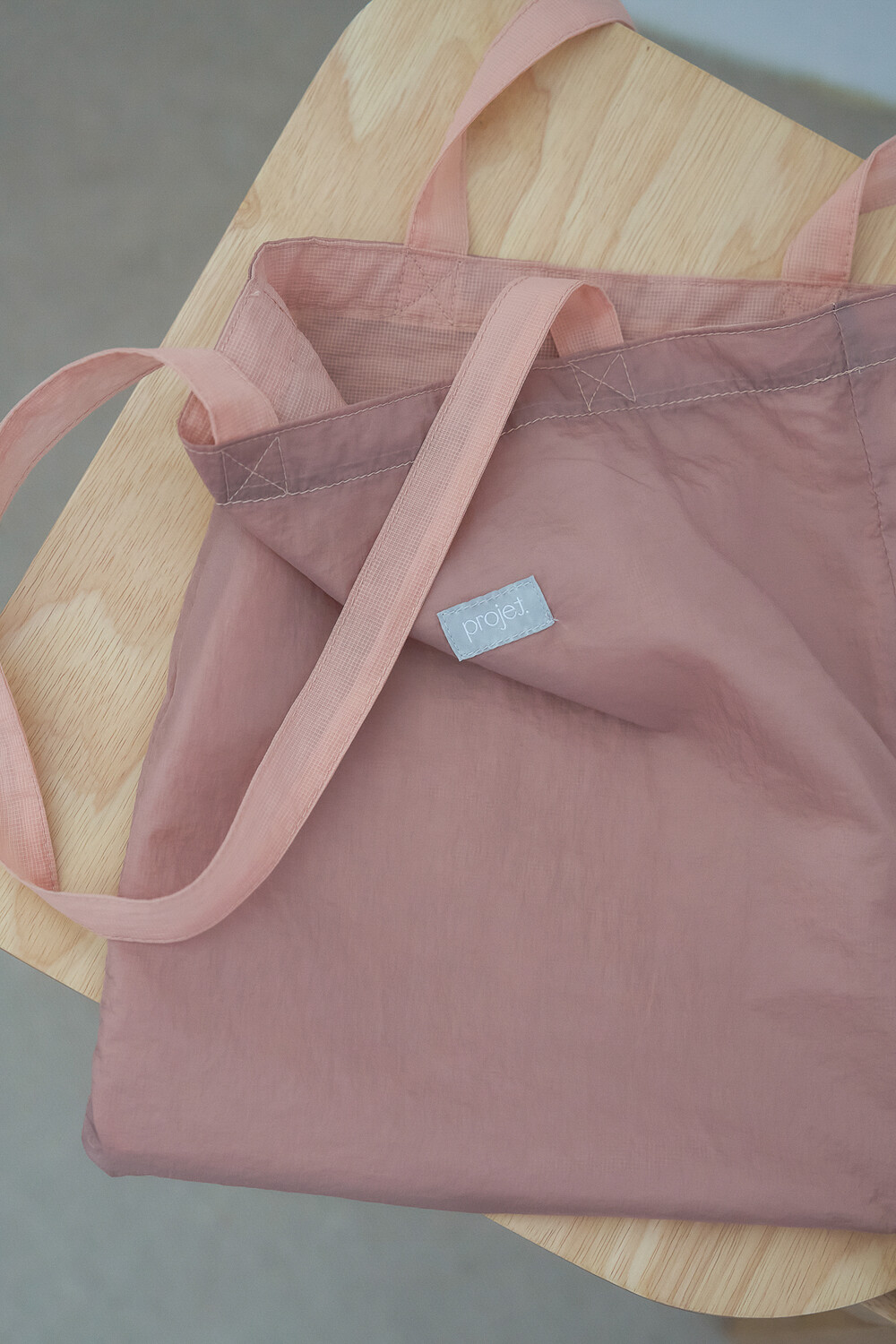 서로 다른 두 개의 질감을 가진 나일론 소재 토트백입니다.