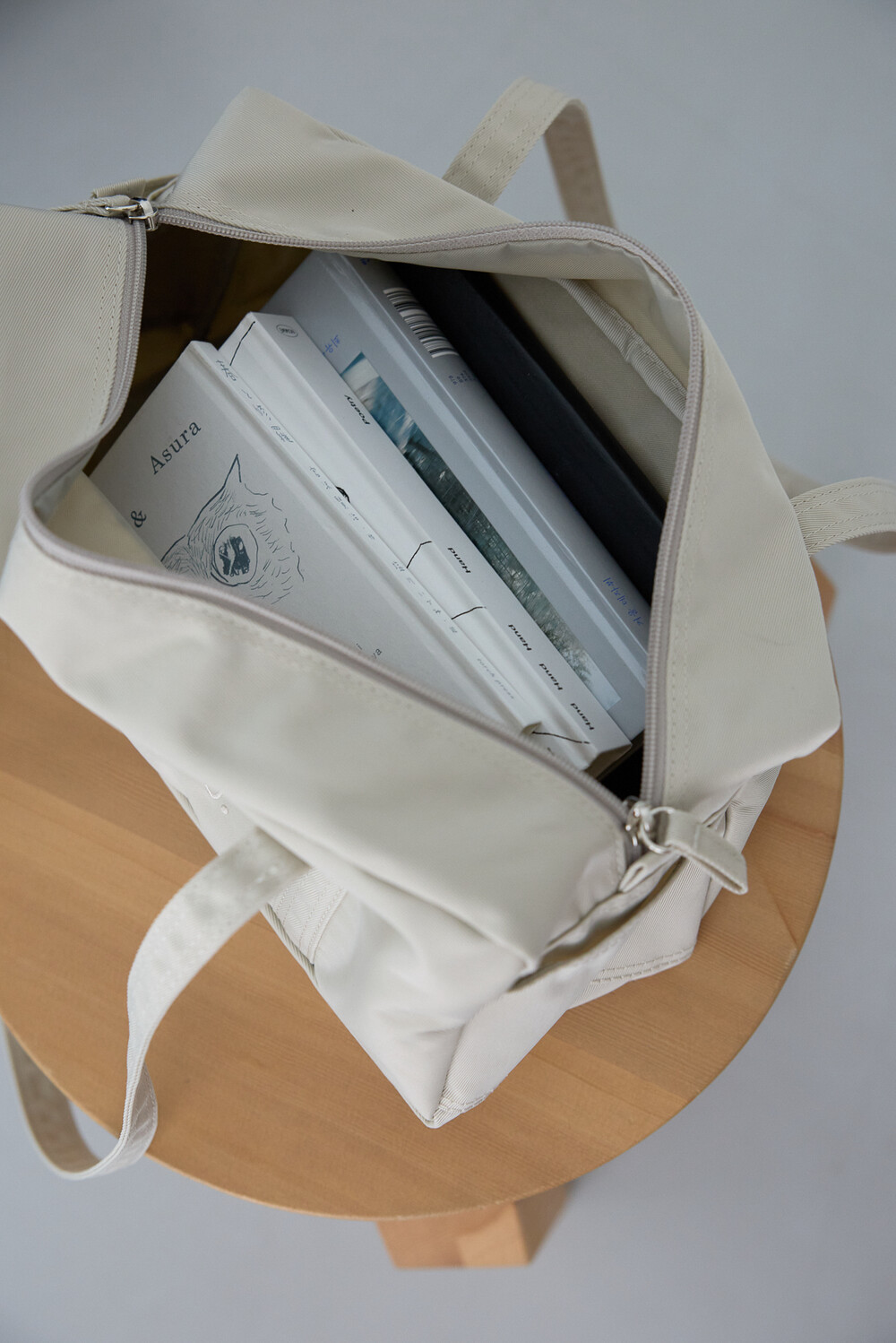 어깨에 멘 상태에서 물건을 꺼내야 할 때, 양방향 지퍼로 어느 쪽에서든 편하게 가방을 열고 닫을 수 있습니다.