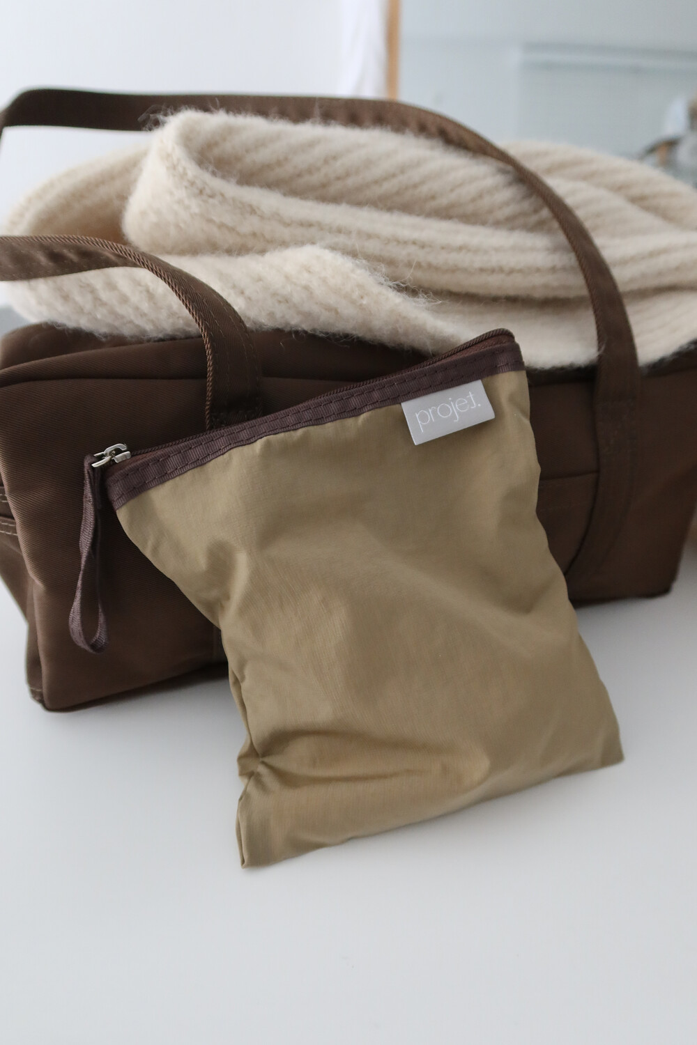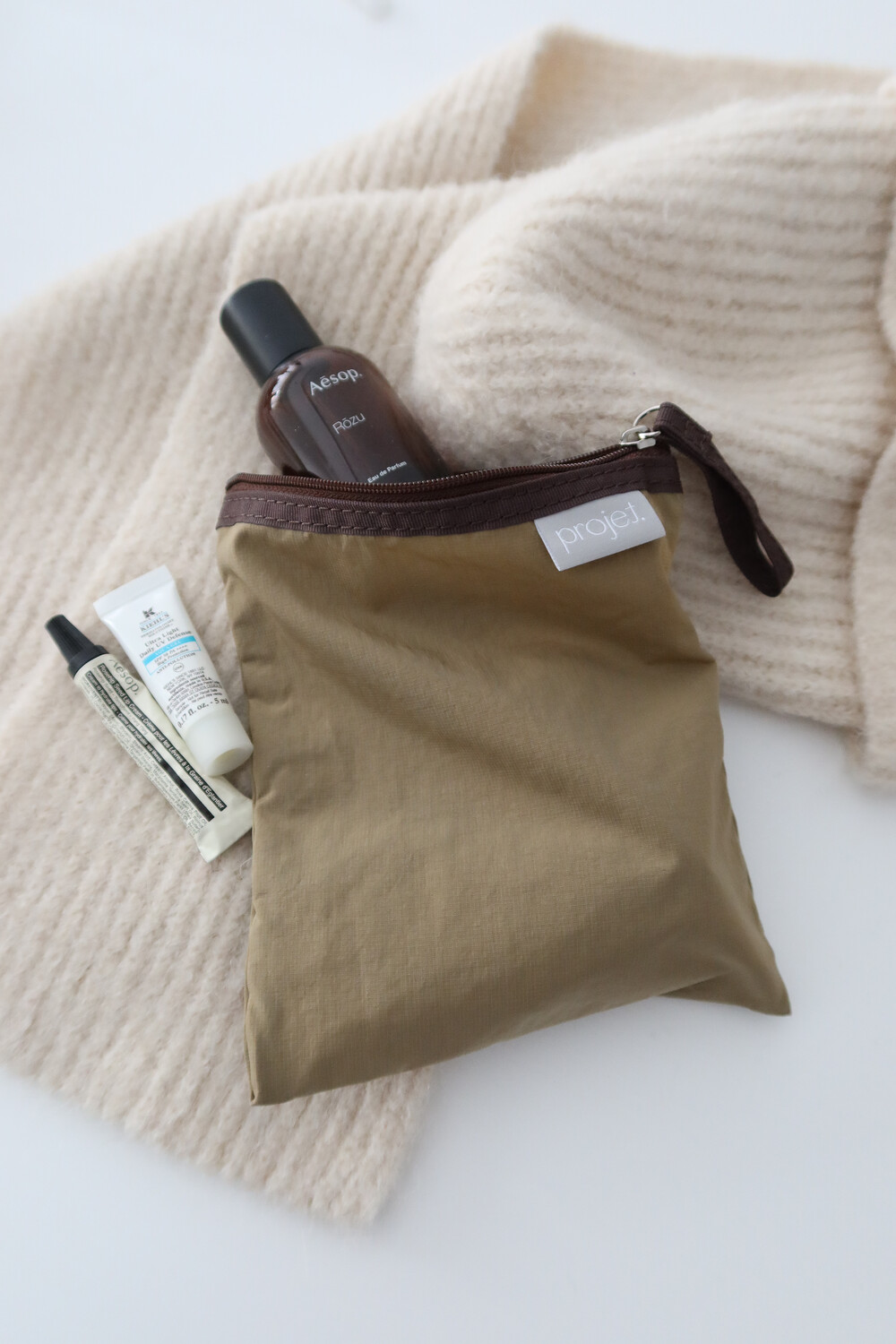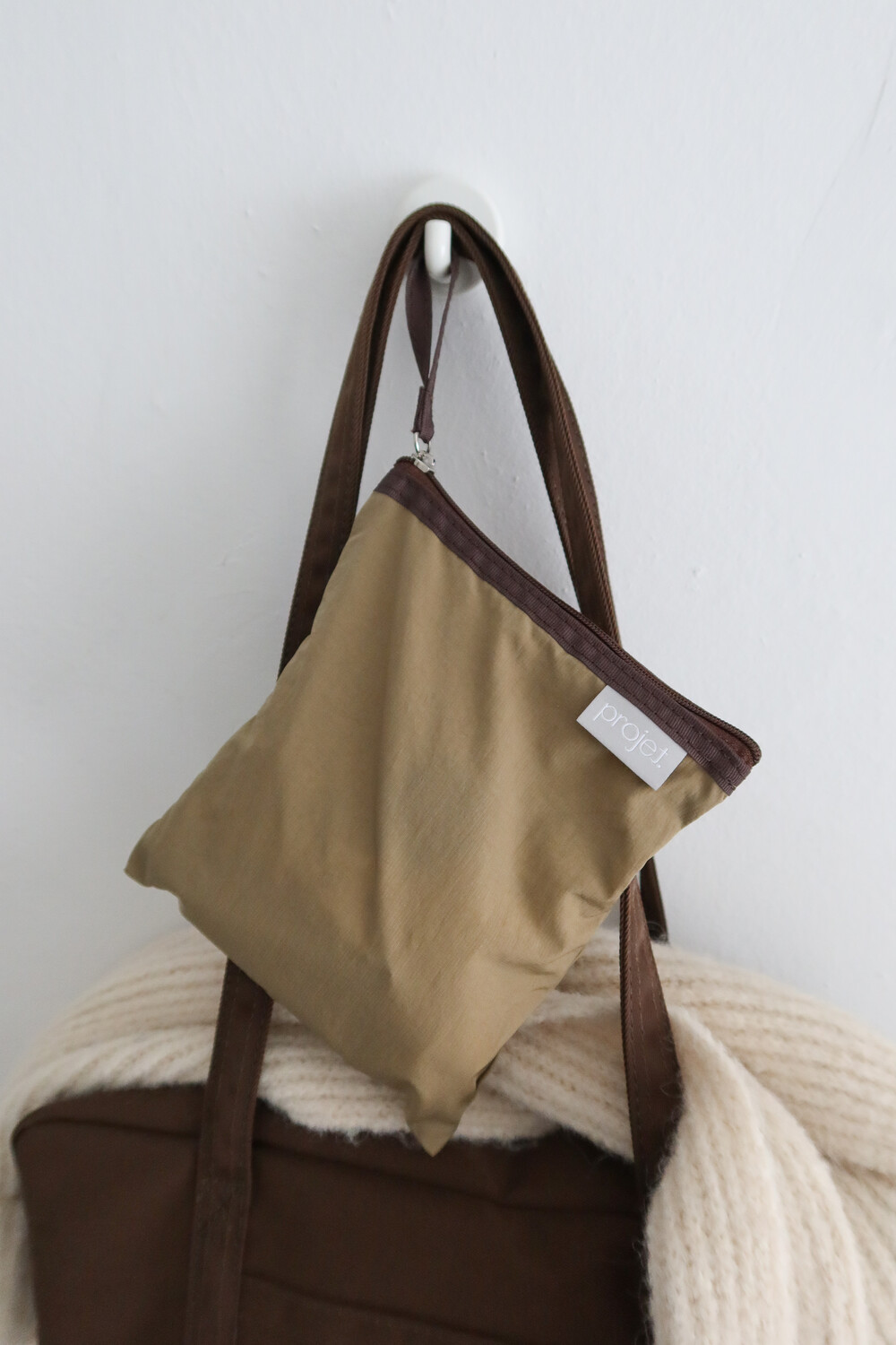 짧은 스트랩이 있어 지퍼를 열고 닫기에도, 어딘가에 걸어 두기에도 무척 편리합니다.