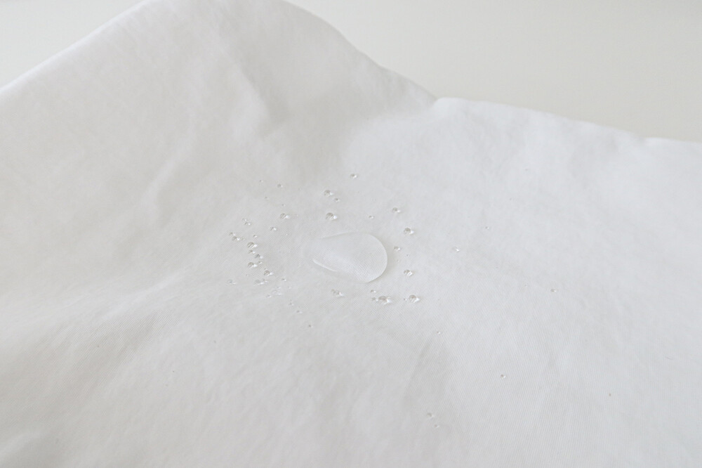 발수 코팅 가공이 되어있어 물방울을 흡수하지 않고 튕겨냅니다. (완전 방수는 되지 않아요!)