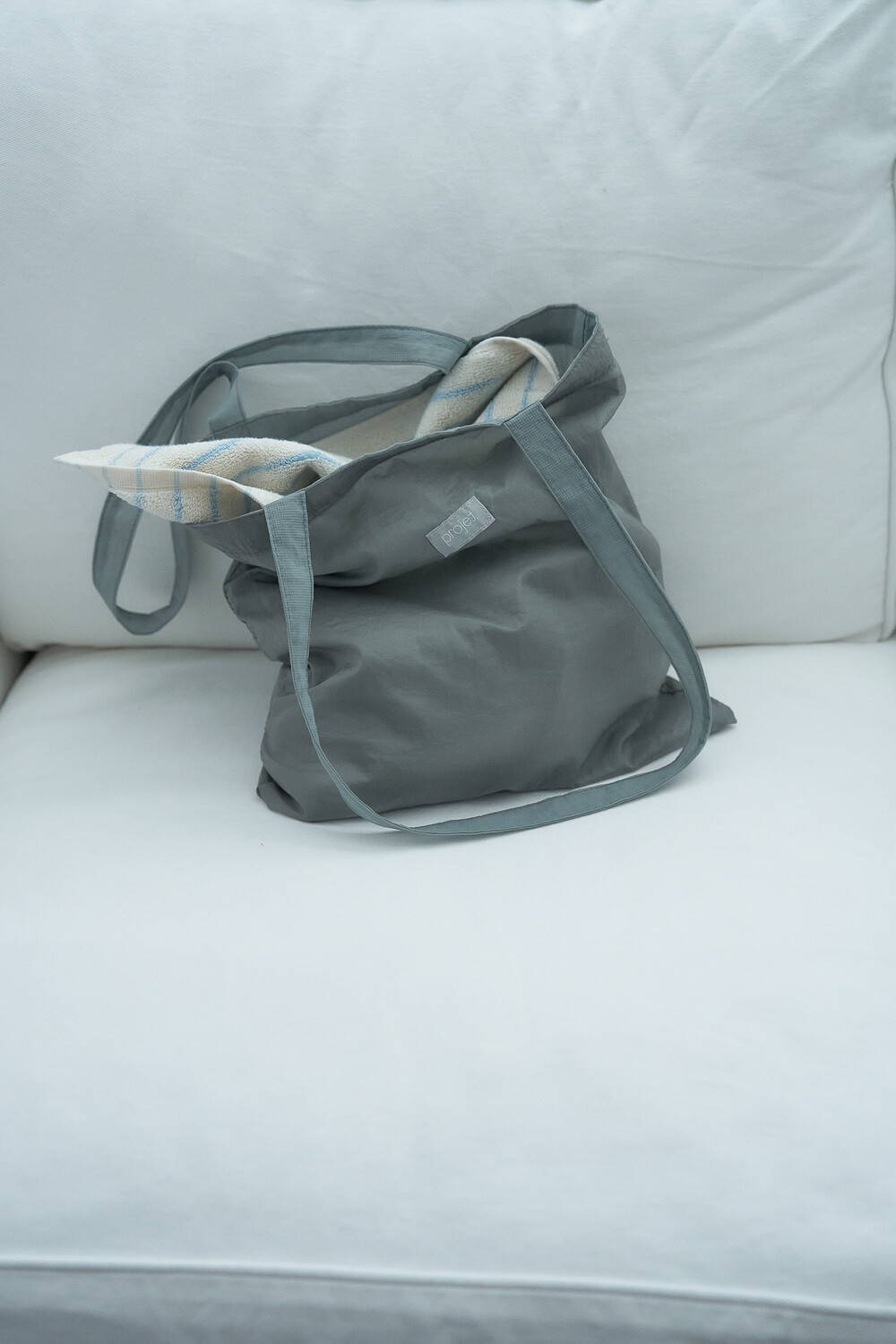 서로 다른 두 개의 질감을 가진 나일론 소재 토트백입니다.