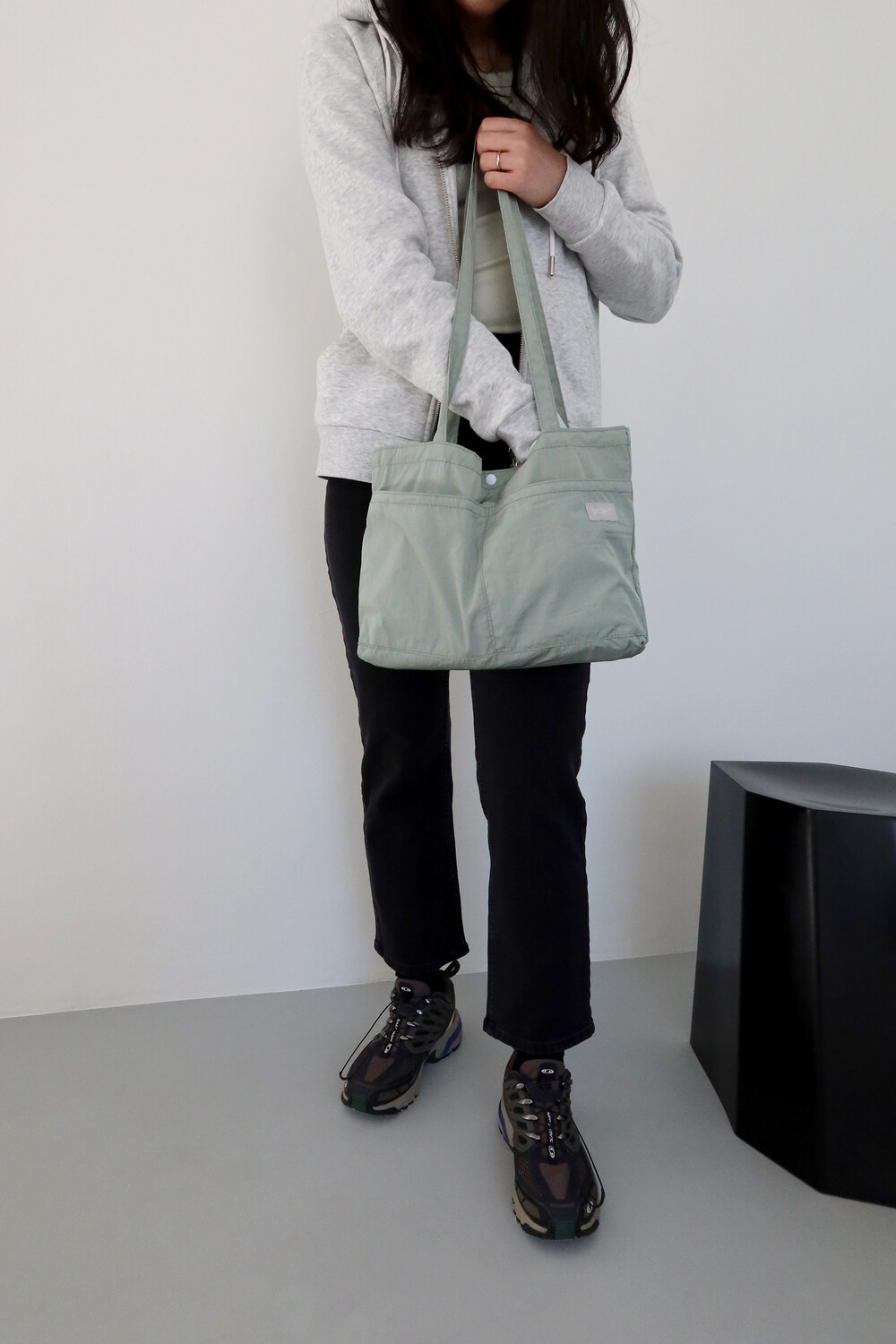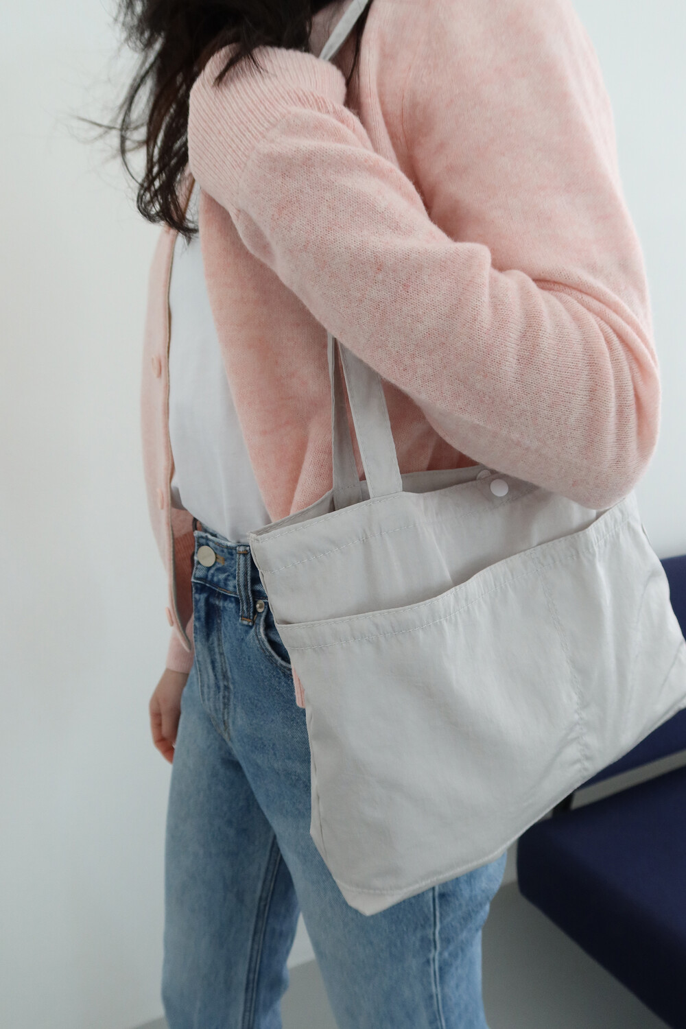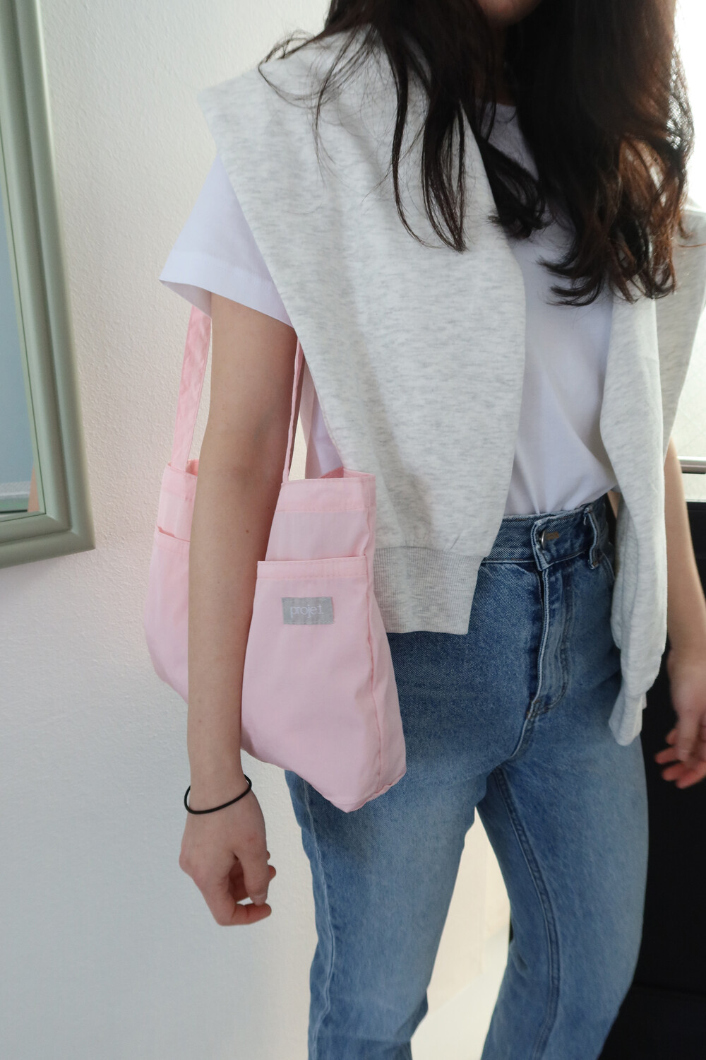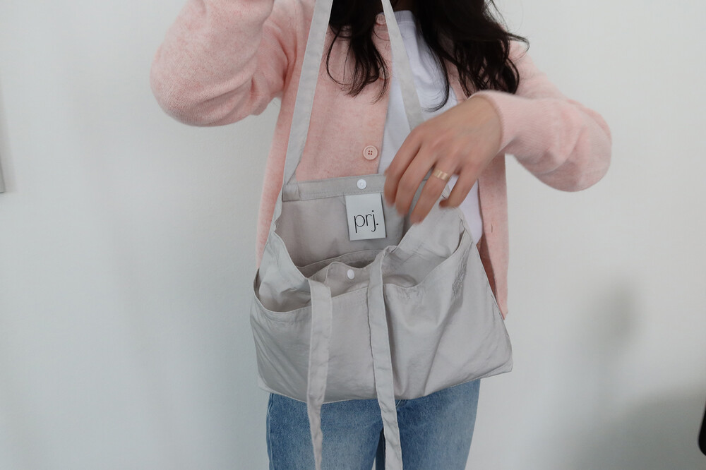 얇고, 가볍고, 은은한 반짝임을 띤 나일론 소재의 숄더백입니다.