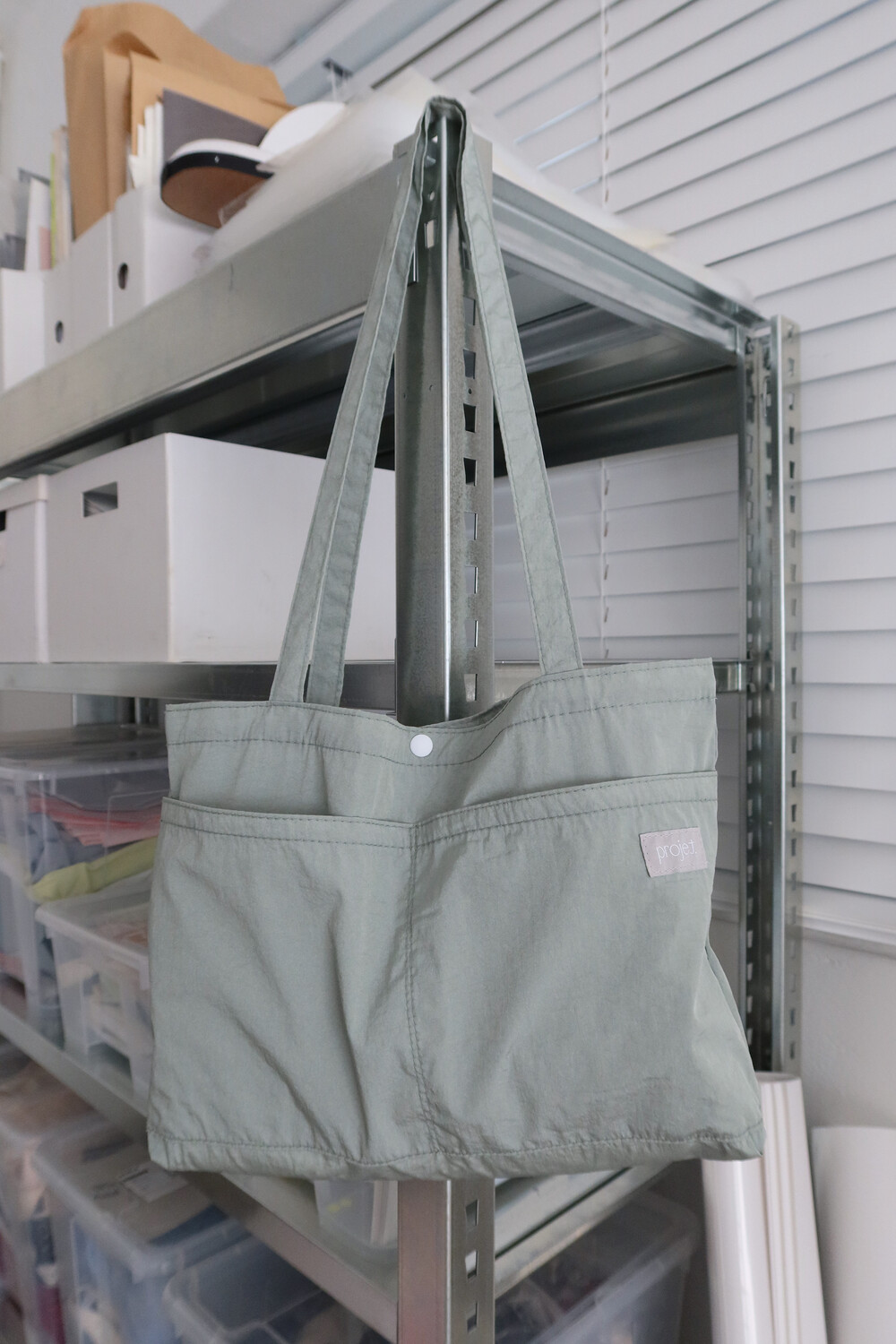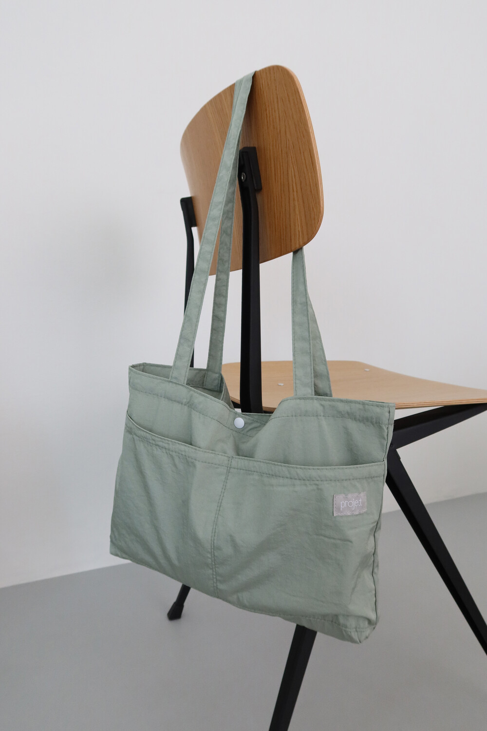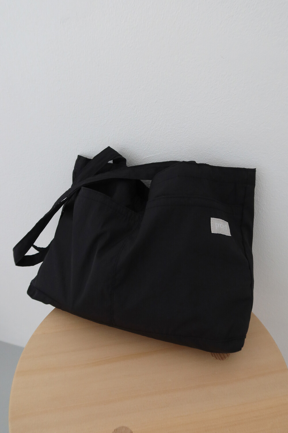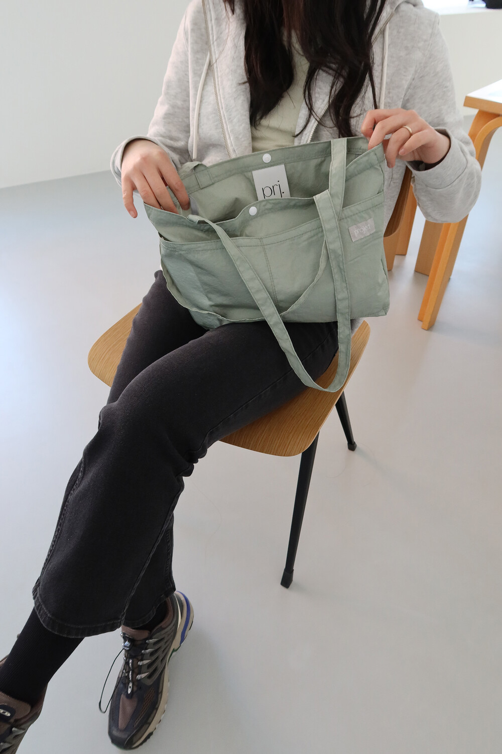 얇고, 가볍고, 은은한 반짝임을 띤 나일론 소재의 숄더백입니다.