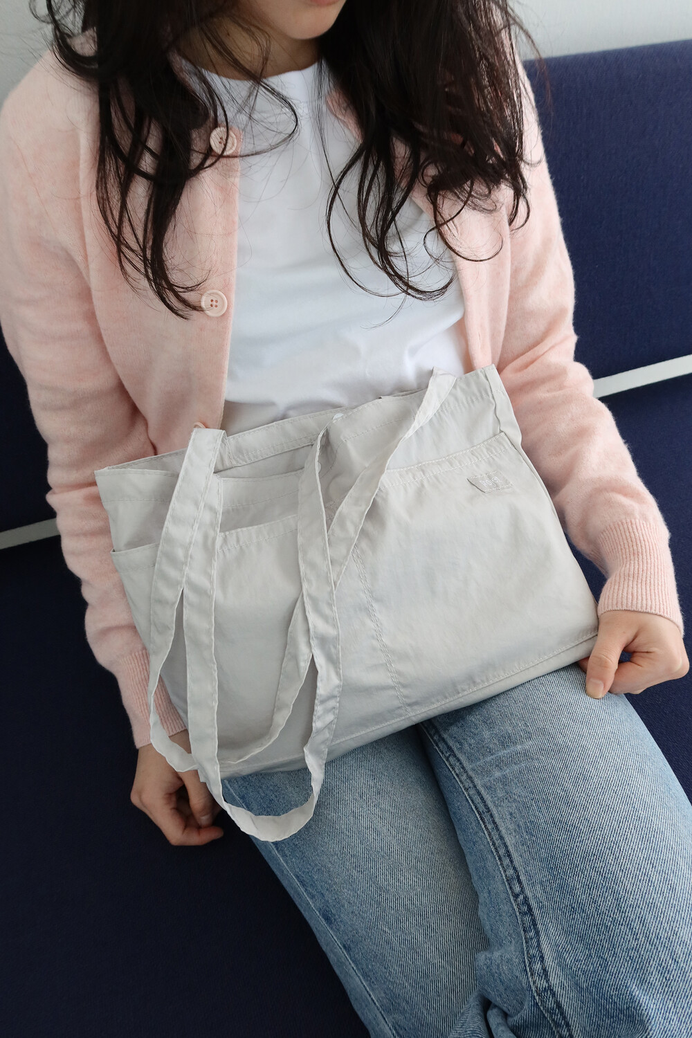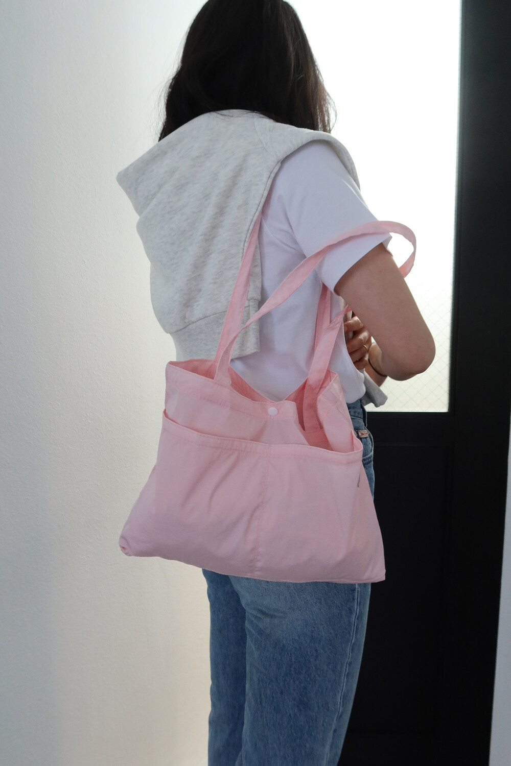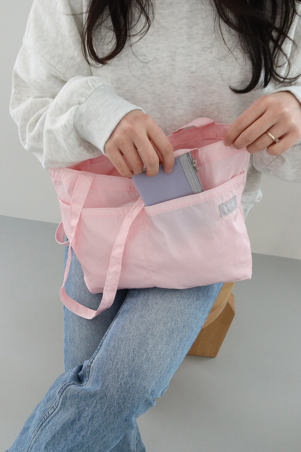 펄(pearl) 가공으로 은은한 광택과 기분 좋게 바스락거리는 질감이 매력인 나일론 소재로 무척 가볍습니다.