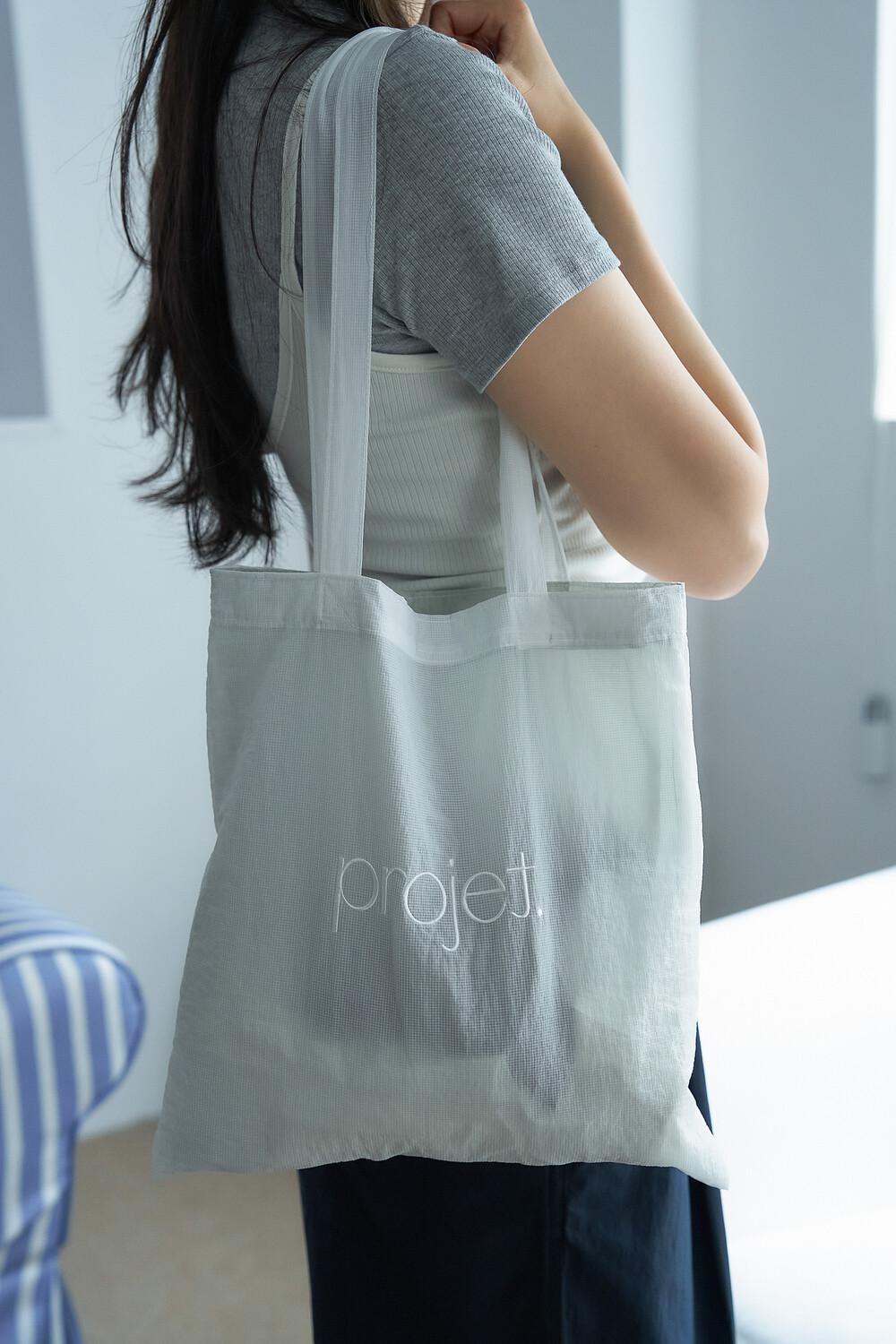 반투명한 두 소재가 만나 레이어를 이루고, 그 너머의 물건은 은은한 실루엣으로 연출됩니다.