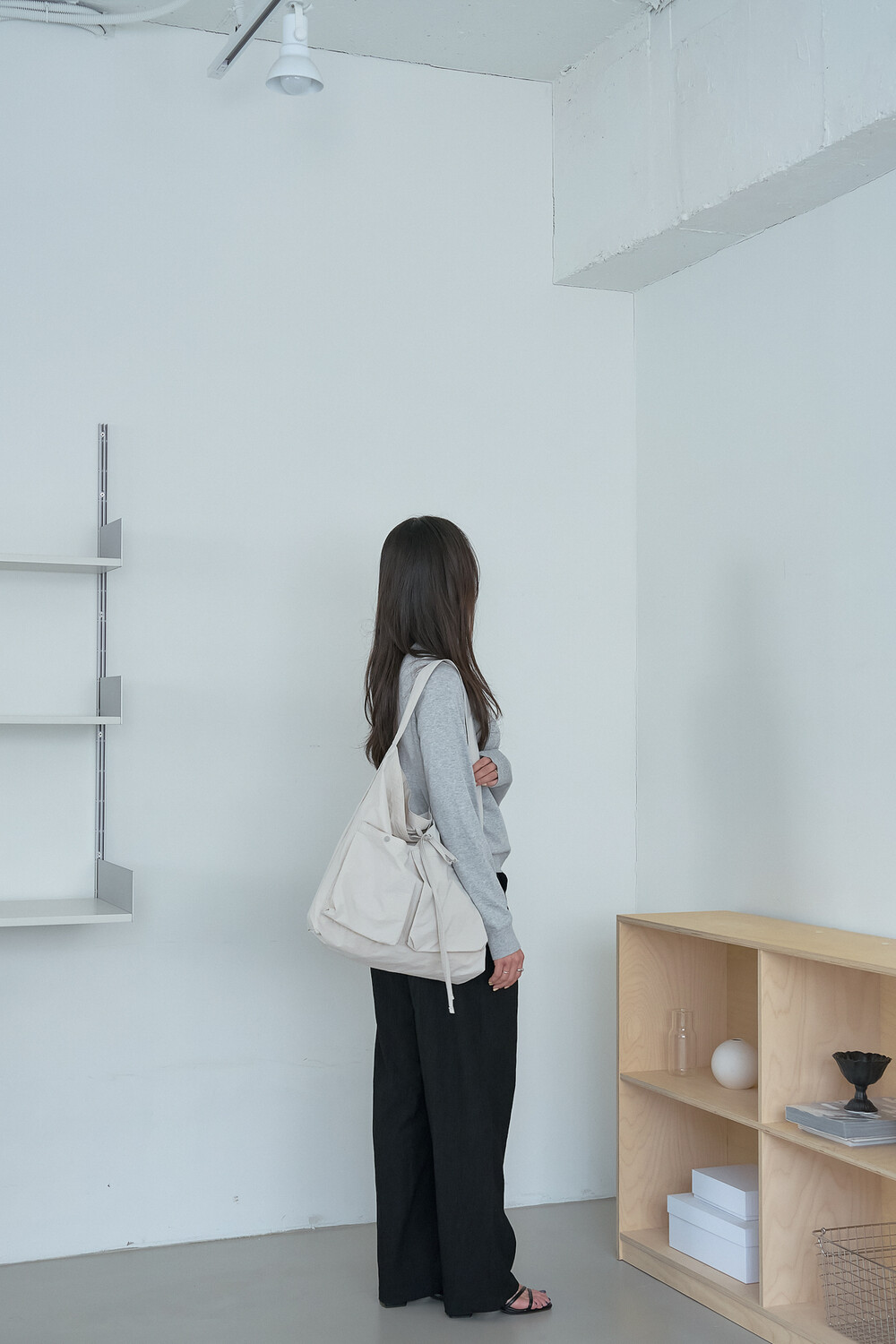 여유로운 실루엣에 입체 형태의 아웃포켓이 포인트인 숄더백입니다.