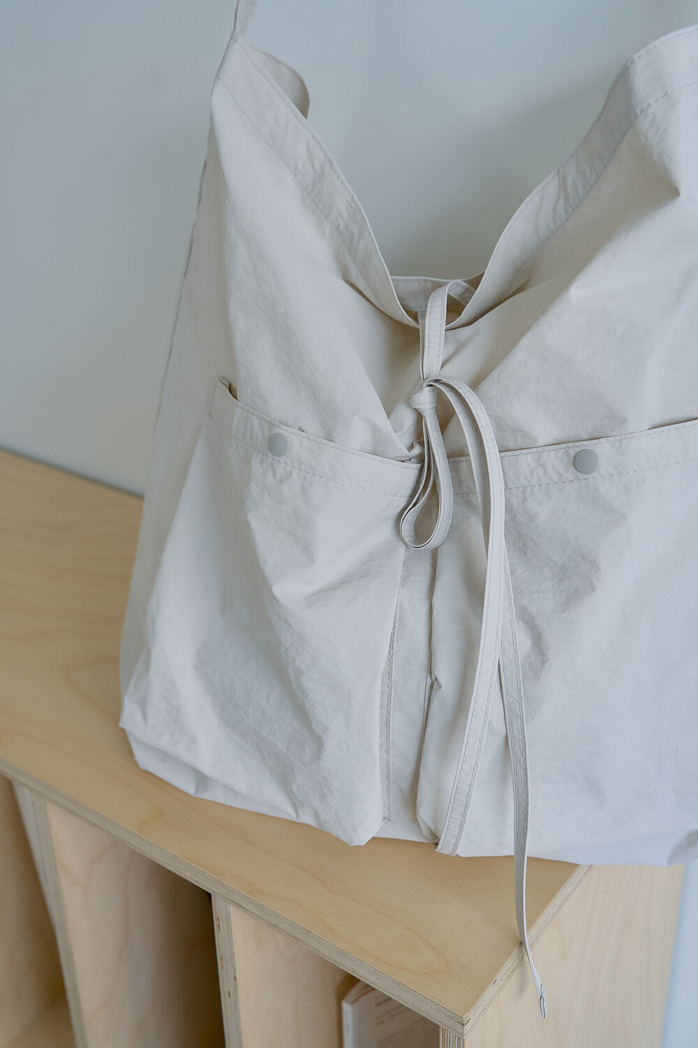 나일론 소재 특유의 기분 좋게 바스락거리는 질감과, 편안하면서도 어딘가 단정한 분위기를 갖고 있는 원단입니다.