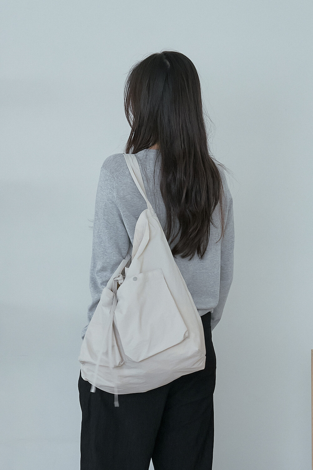 가방 입구에는 두 개의 긴 끈이 달려있습니다.